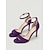 Sandali da donna viola in camoscio con cinturino alla caviglia e tacco a spillo, con punta aperta, ideali per cocktail party e matrimoni. &eventi serali