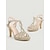 Sandali da donna con tacco alto e cinturini dorati glitterati, eleganti scarpe da cerimonia a punta aperta per invitati a matrimoni, matrimoni in giardino &eventi formali