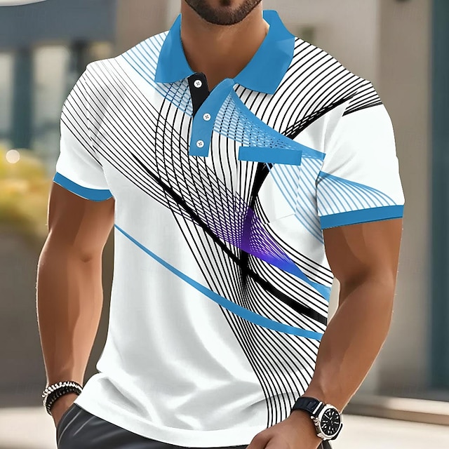 Per uomo Geometrico Polo Manica Corta Magliette polo Camicie con Colletto Business Casual All'aperto Athleisure Abbigliamento quotidiano Stampa 3D Bottoni Primavera & Estate Blu azzurro cielo Giallo#10094911