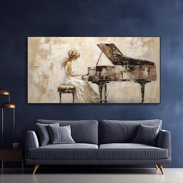 [Punti Salienti del Design] Questo pezzo presenta una pittura in stile impressionista di una donna che suona il pianoforte, utilizzando una palette di colori neutri e sofisticati di beige morbido, bianco e sfumature di marrone. La texture della pittura aggiunge un effetto tridimensionale, creando un forte impatto visivo e rendendola un punto focale coinvolgente in qualsiasi stanza.