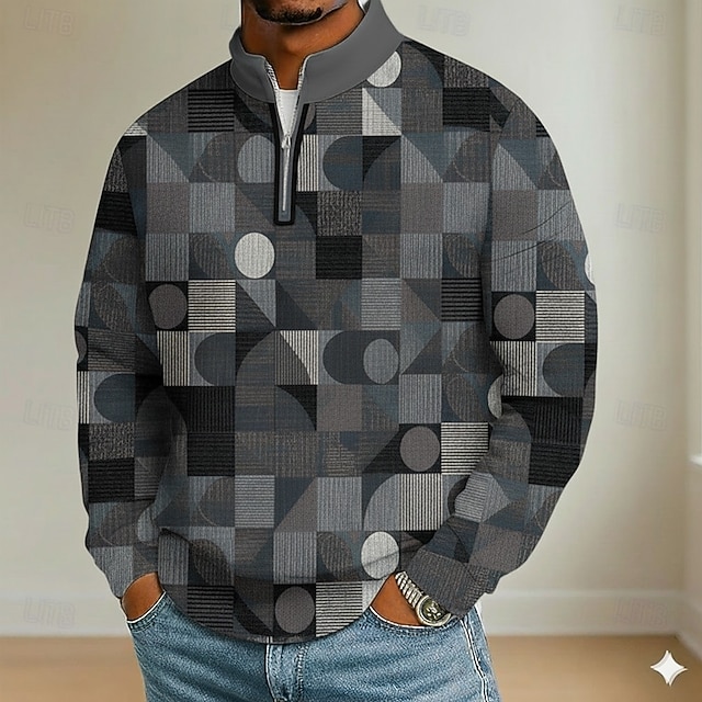 Per uomo Maglia Felpa a nido d'ape Felpa con zip corta Nero Grigio scuro Mezza zip Grafico Stampa Patchwork Tasca Frontale Zip a un quarto Quotidiano Ferie Uscire Poliestere Streetwear Casual Autunno