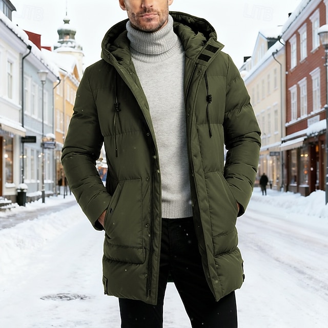 Genere:Per uomo,Modello soprabito:Cappotto Invernale,Giacca imbottita,Imbottito,Occasione:All'aperto,Casuale,Quotidiano,Stagione:Inverno,Funzione:Calore Termico,Tessuto:Poliestere,Stile:Streetwear,Moda,Casual,Lunghezza del soprabito:Lungo,Fantasia/motivo:Tinta unica,Design:Tasca,Scollatura:Con Cappuccio,Delicato:Lavabile,Lavaggio a mano,Lavaggio a macchina,Materiale dell'imbottitura:Poliestere,Data di quotazione:11/28/2025,