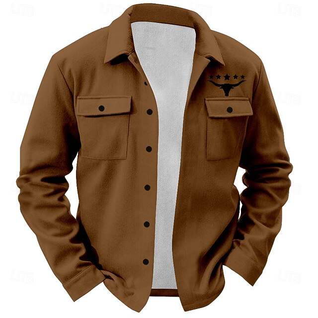 Per uomo Occidentale Mucca Stampa di mucca Camicia Giacca da camicia Sovracamicia Manica lunga Vintage Informale Giornaliero Primavera Autunno Inverno Colletto Bottoni camicie con colletto Nero #10601653