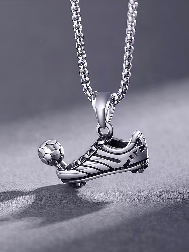 Collana da uomo in acciaio inossidabile con ciondolo a forma di calcio di pallone, gioiello per tifosi di calcio, ideale per partite e per l'uso quotidiano.#10676154