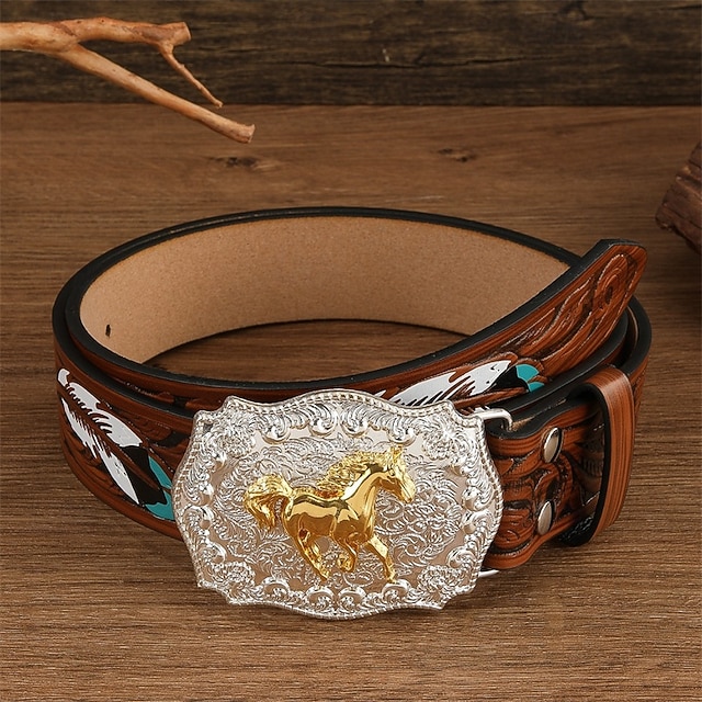 Genere:Per uomo,Categoria:Cintura,Stile:Vintage,Durevole,Regolabile,Occasione:Quotidiano,All'aperto,Design:Fibbia automatica,Rilascio rapido,Fantasia/motivo:Cavallo,Materiale:Lega,Pelle PU,Funzione:Versatile,Tipo di cintura:Cintura Vita,