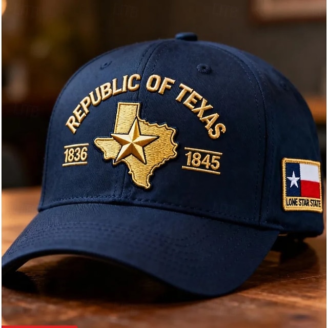 Cappello da baseball della Repubblica del Texas, cappello ricamato con stella del Texas, cappello dello Stato della Stella Solitaria, 1836-1845, blu navy con toppa con bandiera del Texas, regolabile#11055016