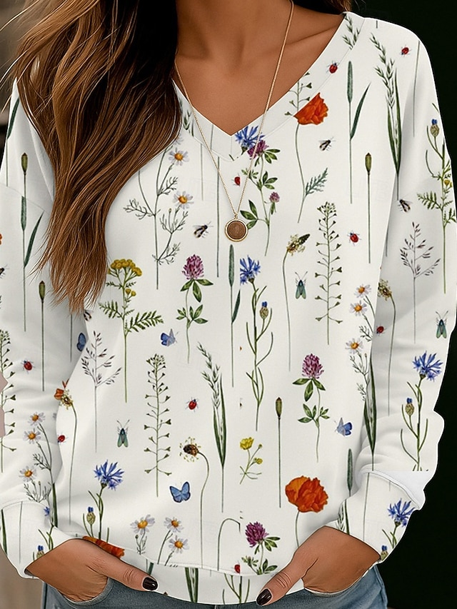Per donna Felpa Pullover Stampato Floreale Streetwear Casual Manica Lunga Scollo a V Top Regolari Streetwear Ferie Uscire Bianco Giallo Rosso Verde Autunno #11115591