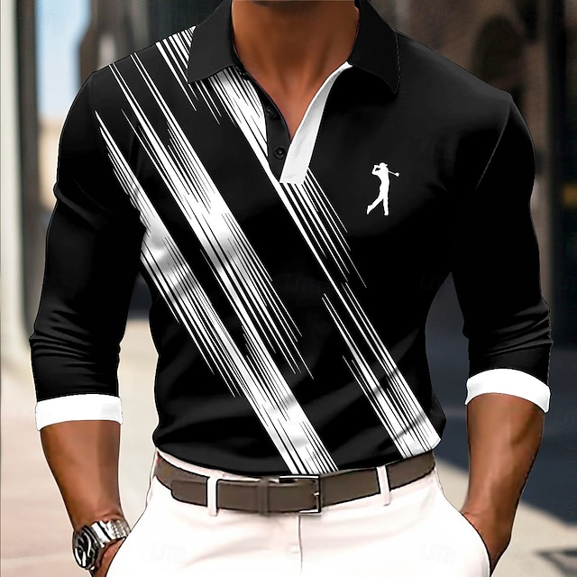 Per uomo Geometrico Linea Polo Manica Lunga Magliette polo Camicie con Colletto Business Casual Affari Athleisure Abbigliamento quotidiano Stampa 3D Bottoni Primavera Autunno Inverno Nero Bianco Blu#11329420