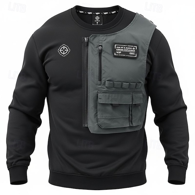 Per uomo Maglia Nero Girocollo Blocco di colori Patchwork Cerniera Sport & Outdoor Quotidiano Ferie Poliestere Streetwear Essenziale Casual Primavera & Autunno Abbigliamento Felpe con cappuccio Felpe