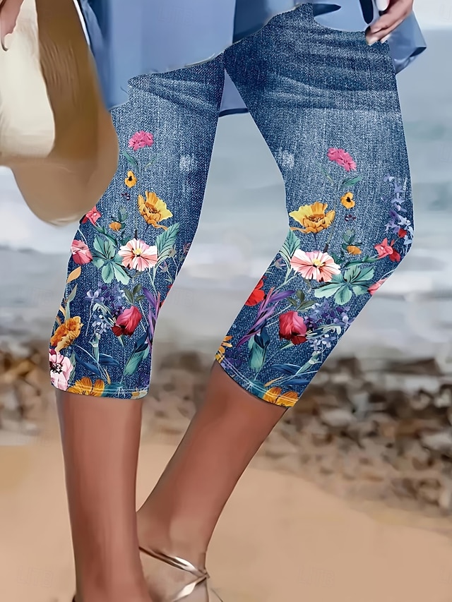 Per donna Pantaloni capri Leggings Vacanza Hawaiano Elegante Capri Vita media Floreale Grafico Stampato Comodità Elasticizzato All'aperto Vacanza Formale Blu Bianco Verde Estate Primavera Autunno#11555250
