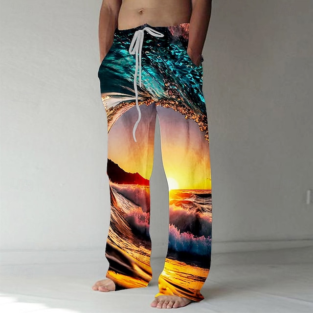 Genere:Per uomo,Modello pantaloni:Pantaloni casual,Pantaloni Larghi,Pantaloni,Stile:Hawaiano,Occasione:Vacanza,All'aperto,Tessuto:Poliestere,Design:Coulisse elastica in vita,Pantaloni tipo lino con tasche,Tipo di vita:Misura del girovita medio,Elasticità:Inelastico,Lunghezza dei pantaloni:Lunghezza intera,Taglio dell'abito:Vestibilità comoda,Tipo di stampa:Stampa 3D,Fantasia/motivo:Paesaggio,Tramonto,Illusione ottica,Stagione:Primavera,Autunno,Estate,