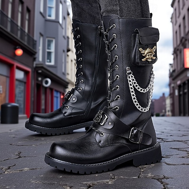 Genere:Per uomo,Materiali:Pelle PU,Pelle,Camoscio,Forma del piede:Punta Tonda,Tipo di chiusura:Allacciatura,Funzione:Antiscivolo,Confortevole,Stile:Punk,Occasione:Quotidiano,All'aperto,Categoria:Stivali,Attività:Camminata,Materiali della fodera:Pelle sintetica,PU (Poliuretano),Materiali della suola:Gomma,Fantasia/motivo:Teschio,SUGGERIMENTO DI FORMATO:taglia standard, seleziona la tua taglia abituale,Tendenze 2025:Stivali da Combattimento,Asse dello stivale (cm):Stivali a Metà Polpaccio,