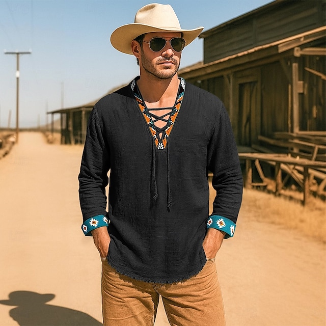 Tessuto:Cotone e Lino,Modello top:Stile vichingo,Camicia Estiva,Camicia da Spiaggia,Camicia Western,Camicia di lino,Camicia,Genere:Per maschio,Per uomo,Design:Coulisse,Occasione:Casual Quotidiano,Casuale,Ferie,Vacanza,Abbigliamento quotidiano,Stile:Casual,Essenziale,Stile Boho,Spiaggia,Scollatura:Scollo a V,Lunghezza della manica:Manica Lunga,Delicato:Lavaggio a macchina,Lavare seperatamente,Fantasia/motivo:Tinta unica,Caratteristiche:Traspirante,