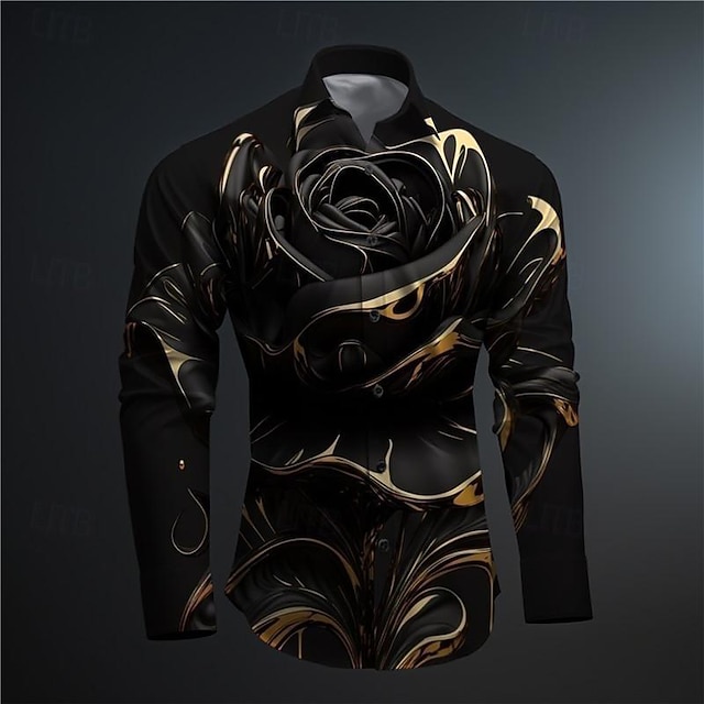 Per uomo Rosa Geometrica Camicia con bottoni Camicie stampate Manica lunga Sottoculturale Da mare Feste Strada Primavera estate Collo ripiegabile Stampa Bottone giù Rosso Oro #12572497