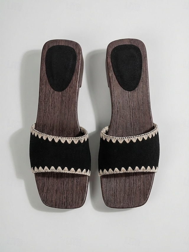 Sandali bassi da donna neri - comodi sandali a punta quadrata per vacanze all'aperto e viaggi estivi &passeggiate informali in riva al mare#12626158