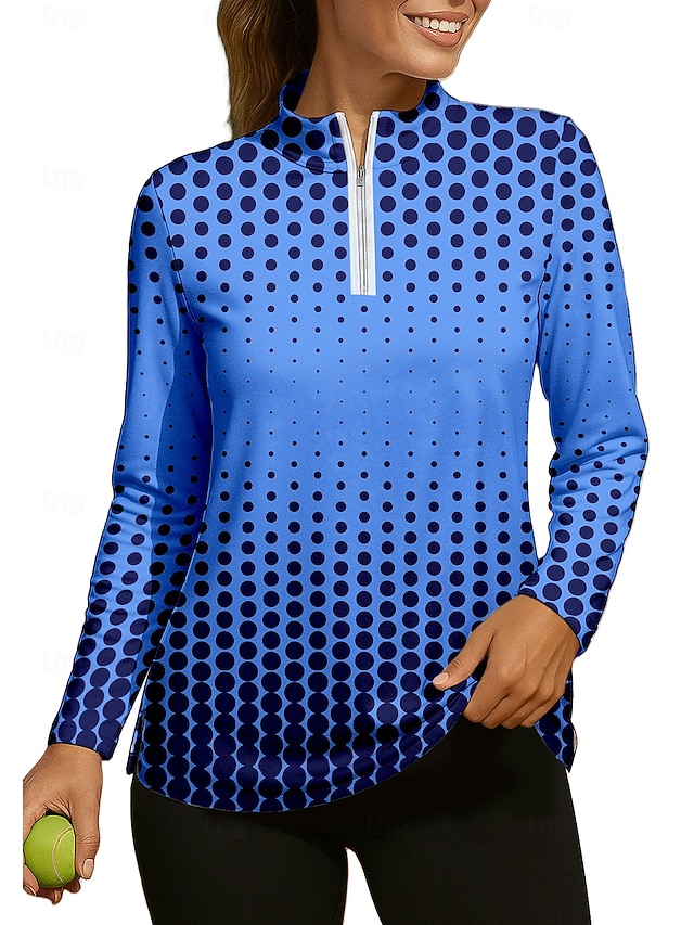 Per donna Geometrico Sfumatura Puois Maglietta Maglietta sportiva Polo da golf Maglia da tennis Manica Lunga Cerniera Floreale UPF50+ Resistente ai Raggi UV Alta elasticità Traspirante Pallavolo#12924174