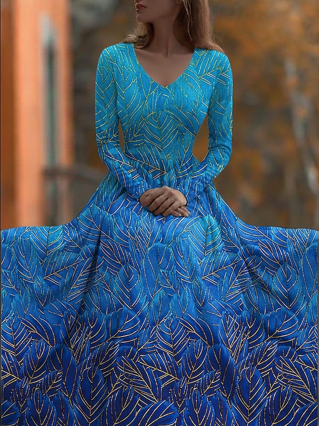 Per donna Abito maxi Abito Pieghettato Festa Casual Boho Quotidiano Data Uscire Vestibilità regolare Floreale Manica Lunga Scollo a V Blu Verde Estate Primavera#13074716