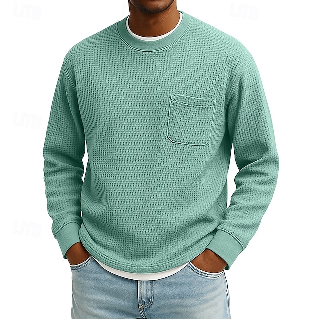 Per uomo Maglietta Waffle Maglietta Maglia Henley a nido d'ape Manica Lunga Girocollo Autunno & Inverno Tutte le stagioni Tinta unica Testurizzato Tradizionale / Vintage Casual Tasca Casuale Casa#13100508