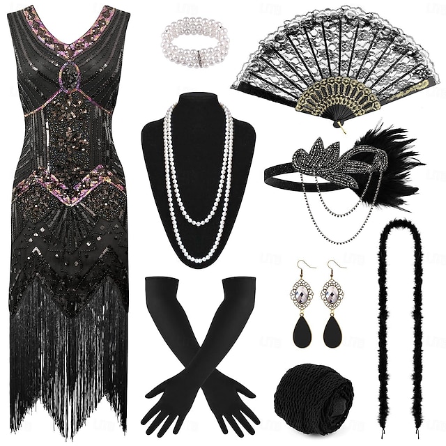 Genere:Per donna,Tipi:Abito per Festa di Natale,Abiti da Ballo,Abito Flapper,Abiti,Vestito,Caratteri:Invitato al matrimonio,Charleston,Il grande Gatsby,Materiale:Poliestere,Lustrini,Stile:Anni 1920,Anni Ruggenti,Orlo / strascico:Lunghezza al ginocchio,Sottocategoria:Bundles,Design:Paillettes,Frangia con nappe,Piuma,Lunghezza della manica:Senza Maniche,Tipo di manica:Senza maniche,Elasticità:Micro-elastico,Delicato:Lavabile,VITA (cm):XS:64-68;S:68-72;M:72-76;L:76-80;XL:80-84;XXL:84-88;3XL:88-92,Vacanze:Capodanno,Mascherata,Occasione:Mascherata,Festa / Sera,Festa serale,Halloween,Festa a tema retrò,speakeasy,Fascia d'età:Adulti,Scollatura:Scollo a V,Stagione:Tutte le stagioni,Contenuto della confezione:Vestito,1 Paio di orecchini,1 Collana,Braccialetto,Guanti,Calzini,Altri Accessori,Copricapo,1 Fan,Abiti per il ritorno,