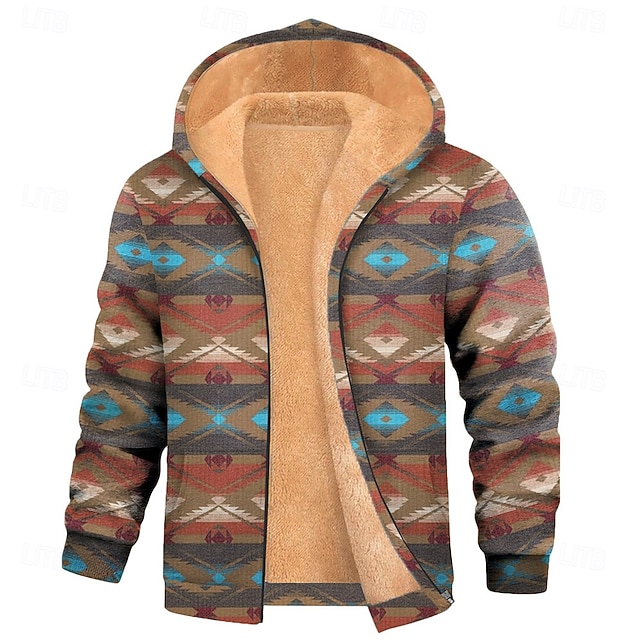 Per uomo Azteco Pile Felpa con Cappuccio Giacca di pelle Felpa Etnico Classico Vintage Retrò Girocollo All'aperto Viaggio Campeggio Rosso Blu Verde Con zip Autunno Inverno progettista S M L XL 2XL 3XL #13515685