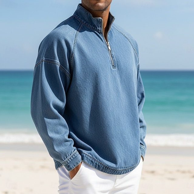 Per uomo Camicia 100% cotone lavaggio acido Maglietta Manica Lunga Collo alla coreana Autunno & Inverno Primavera Autunno Semplice Vintage Streetwear Casual Con zip Tinto in capo Sbiadito Casuale#13974292