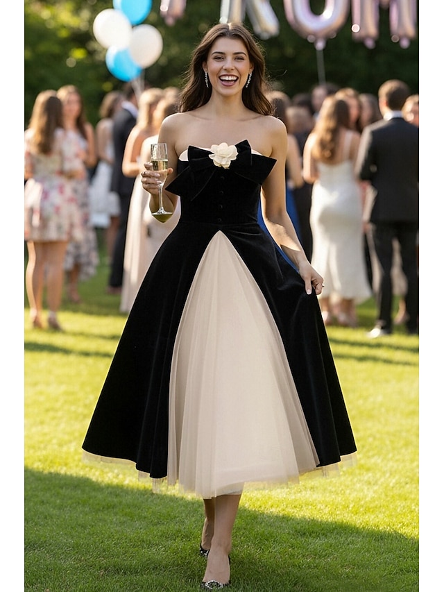 Linea ad A Lunghezza alla caviglia Lunghezza Tè Abito da Ballo Abito da Cocktail Abito da Cocktail Nero Abiti da Ballo Elegante Senza Maniche Senza Spalline Balli di fine anno Festa serale Tulle