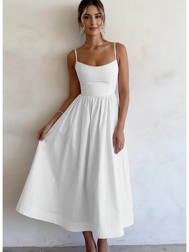 Per donna Abito Midi Vestito Casual Abito a trapezio Abito Estivo Elegante Moda Moderno All'aperto Vacanza Uscire Vestibilità regolare Semplice Senza Maniche Spalline Blu Bianco Rosa Viola Estate #14041723