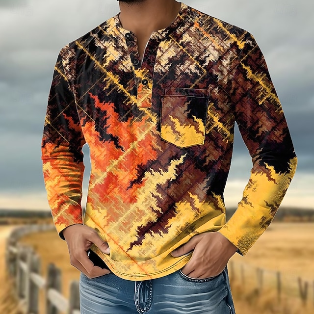 Tessuto:100% Poliestere,Modello top:Maglietta,Maglia Henley,Genere:Per uomo,Design:Grafico,Occasione:Casuale,Stile:Di tendenza,Retrò Vintage,Casual,Scollatura:Henley,Lunghezza della manica:Manica Lunga,Spessore:Medio spessore,Elasticità:Elasticizzato,Delicato:Lavaggio a macchina,Lunghezza del top:Top Regolari,Fantasia/motivo:Astratto,Stampa,Stagione:Autunno,Primavera,Spalle (cm):S:44.5;M:46;L:47.5;XL:49;2XL:51;3XL:53,busto (cm):S:106;M:112;L:118;XL:124;2XL:132;3XL:140,Lunghezza (cm):S:70;M:72;L:74;XL:76;2XL:78;3XL:80,LUNGHEZZA MANICHE (cm):S:63.5;M:64.5;L:65.5;XL:66.5;2XL:67.5;3XL:68.5,
