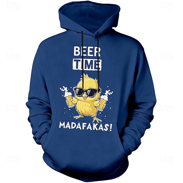 Felpa con cappuccio grafica per uomo - Beer Time Madafakas divertente stampa di gallina felpa con maniche lunghe #14173555