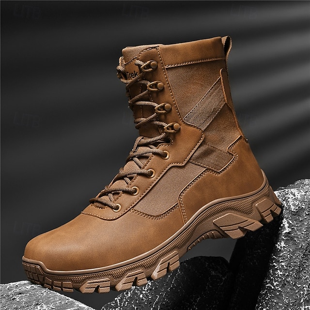 stivali da combattimento impermeabili marroni da uomo con suola ammortizzante e supporto rinforzato alla caviglia, calzature tattiche resistenti per lavoro, escursionismo e campeggio#14234786
