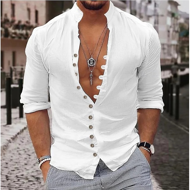 Per uomo Camicia Camicia di lino Camicia Estiva Camicia casual Camicia con Bottoni Semplice Casuale Quotidiano Blu Nero Bianco Rosa Manica Lunga Colletto alla coreana Estate Primavera Abbigliamento #14288076