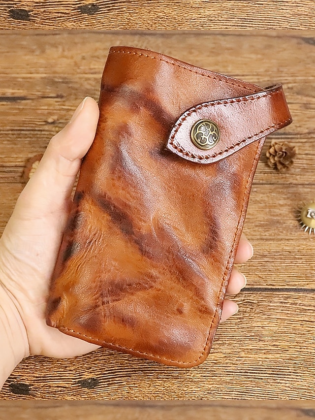 Portafoglio lungo da uomo in vera pelle, porta carte bifold vintage di grande capacità, stile retrò multicolore, design sottile e portatile per uso quotidiano, viaggi, lavoro e casual #14323818