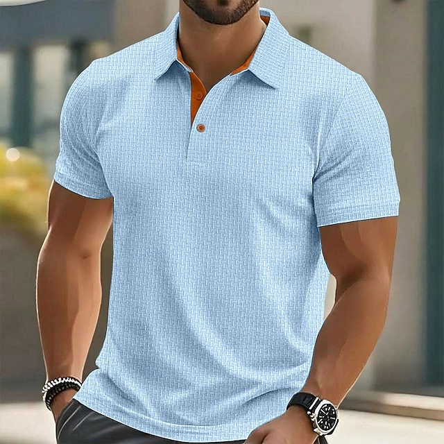 Per uomo Testurizzato Polo a Maglia Waffle Casuale Affari Classico Manica Corta Moda Moderno Tinta unica Testurizzato Bottoni Primavera & Estate Estate Primavera Vestibilità regolare Blu Nero Bianco #14351925