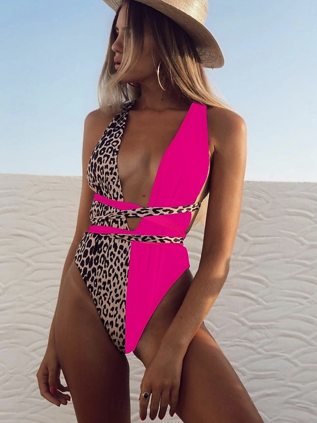 Costume da bagno intero da donna snellente monokini leopardato controllo della pancia vita alta snella senza schienale abbigliamento da spiaggia scollatura a V senza maniche