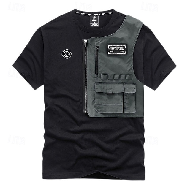 Per uomo Maglietta Camicia a Maniche Corte Manica Corta Girocollo Primavera & Estate Blocco di colori Moda Designer Essenziale Patchwork Cerniera Vacanza Streetwear Uscire Nero Maglietta Top per Uomo #14563795