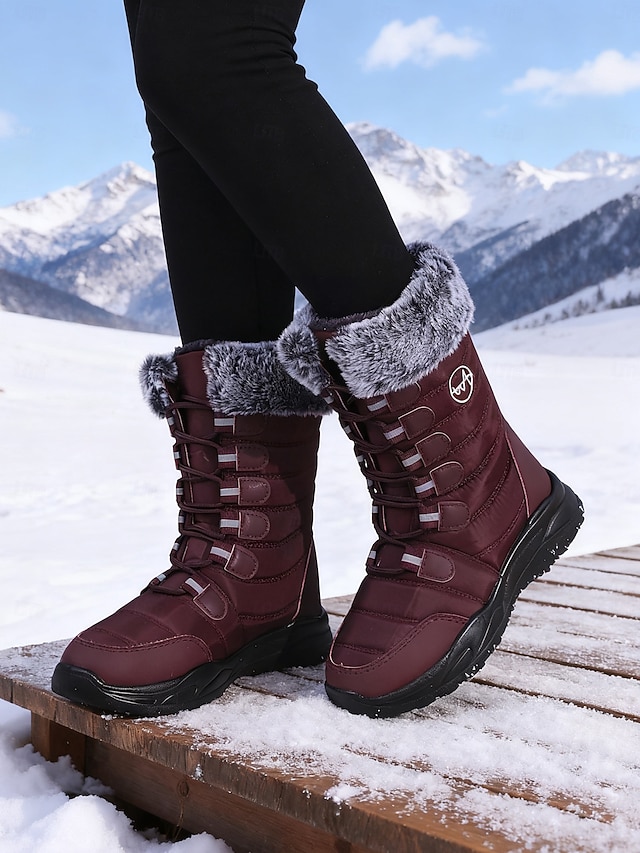 stivali da neve invernali da donna a metà polpaccio color bordeaux con finiture in pelliccia sintetica, stivali da esterno impermeabili e isolanti per escursionismo e sci &tempo freddo #14580110