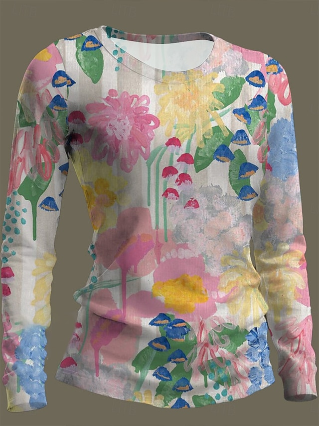 Per donna Maglietta Stampato Floreale Grafico Moda Classico Casual Manica Lunga Girocollo Top Regolari Quotidiano Weekend Rosa Rosso Viola Estate Primavera #14808663