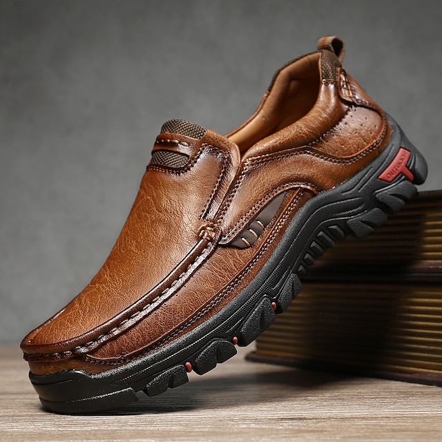 scarpe slip-on da uomo in similpelle marrone con suola robusta: calzature comode ed eleganti per uscite informali e attività all'aperto#15339389