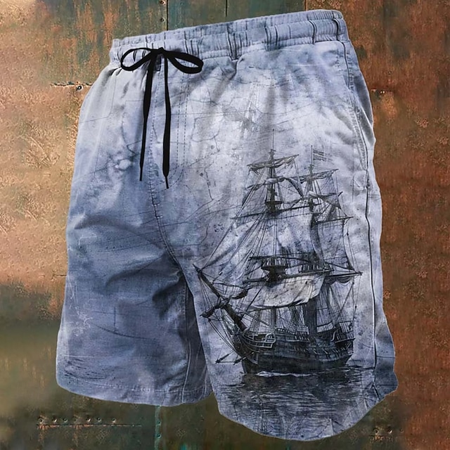 Per uomo Nautico Barca a vela Trama grunge Costumi da bagno Pantaloncini da mare Pantaloncini da Surf Misura del girovita medio Retrò Vintage All'aperto Vacanza Abbigliamento Quotidiano Tasche #15369909