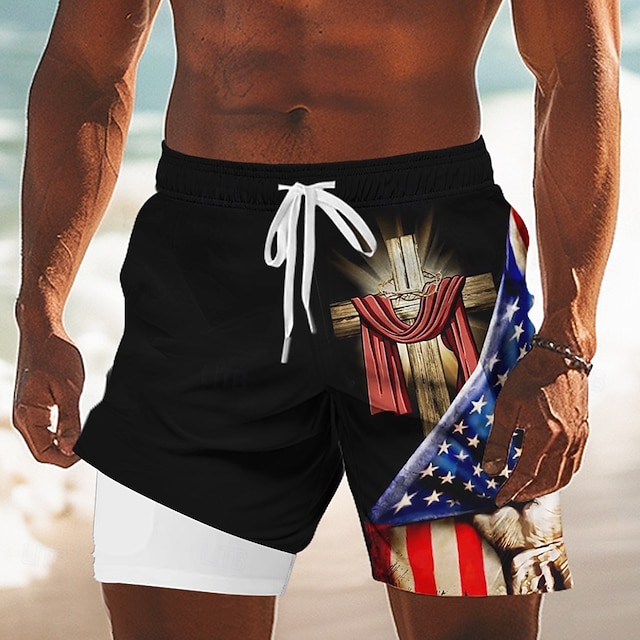 Giornata dell'indipendenza Per uomo Bandiera 4 luglio, 250° anniversario degli Stati Uniti Croce Pantaloncini foderati Pantaloncini da bagno 2 in 1 Costumi da bagno Misura del girovita medio Ferie#15626800