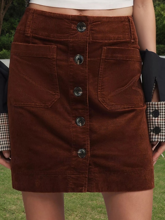 Per donna Moda Casual Mini Vita Alta Gonne Semplice Tasca Inelastico Quotidiano Streetwear Marrone Primavera #15724252