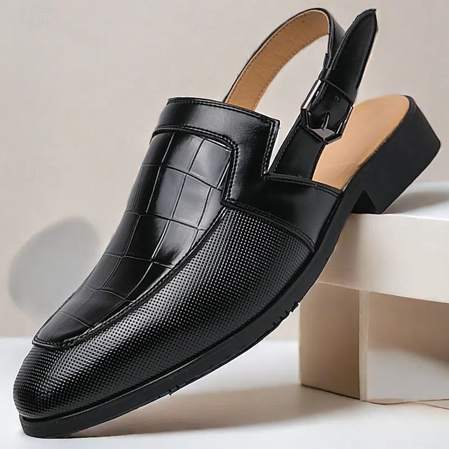 scarpe eleganti da uomo nere con cinturino posteriore in pelle stampata coccodrillo, vestibilità comoda e suola resistente - perfette per eventi formali e occasioni di lavoro#15725742