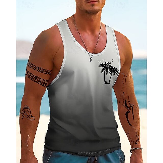 Per uomo Canotta Maglietta smanicata Canottiera Maglietta senza maniche Senza Maniche Girocollo Estate Sfumatura Albero di Cocco Moda Designer Essenziale Stampato Vacanza Streetwear Uscire Blu #15893047