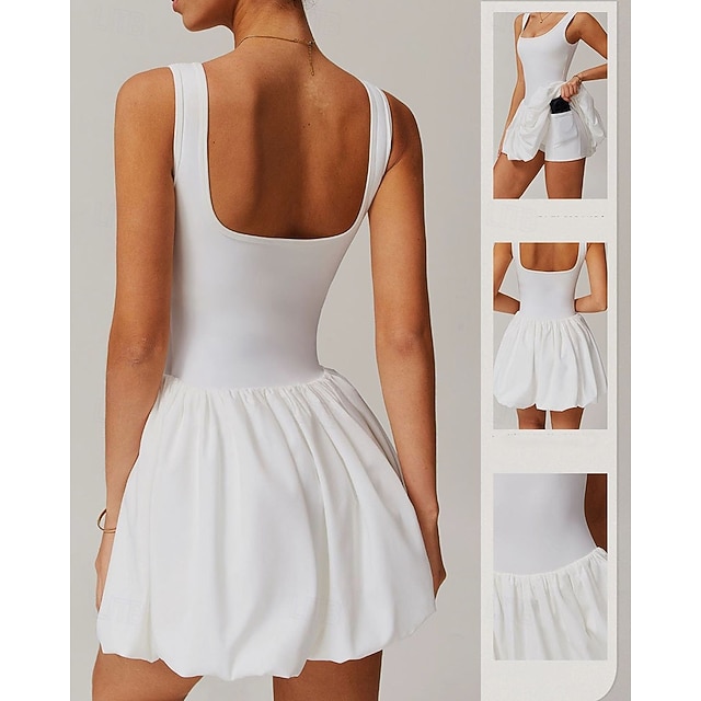 Genere:Per donna,Fascia d'età:Adulti,Categoria:Abito sportivo,Gonne da tennis con pantaloncini,Abito da tennis,Tipo:Vestito,Attività:Yoga,Tennis,Corsa,Fitness,Occasione:All'aperto,Sportivo,Quotidiano,Athleisure,Stagione:Estate,Primavera,Elasticità:Elasticizzato,Funzione:Traspirante,Assorbimento degli urti,Tessuto:Nylon,Lunghezza della manica:Senza Maniche,Design:Arricciato,Patchwork,Tasca,Scollatura:Scollo Tondo,Fantasia/motivo:Tinta unita,Delicato:Umido e a secco,Data di quotazione:01/19/2026,