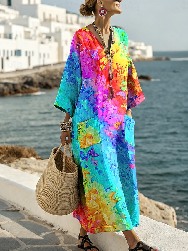 Tipo di abito:Abito a Tubino,Tessuto:Poliestere,Genere:Per donna,Design:Stampato,Tasca,Occasione:Quotidiano,Stile:Casual,Taglio dell'abito:Vestibilità comoda,Tipo di lunghezza del vestito:Abito maxi,Scollatura:Scollo a V,Lunghezza della manica:Manica Lunga,Elasticità:Inelastico,Delicato:Lavaggio a mano,Solo lavaggio a secco,Lavaggio a macchina,Fantasia/motivo:Grafico,Ombre,Stagione:Primavera,Estate,