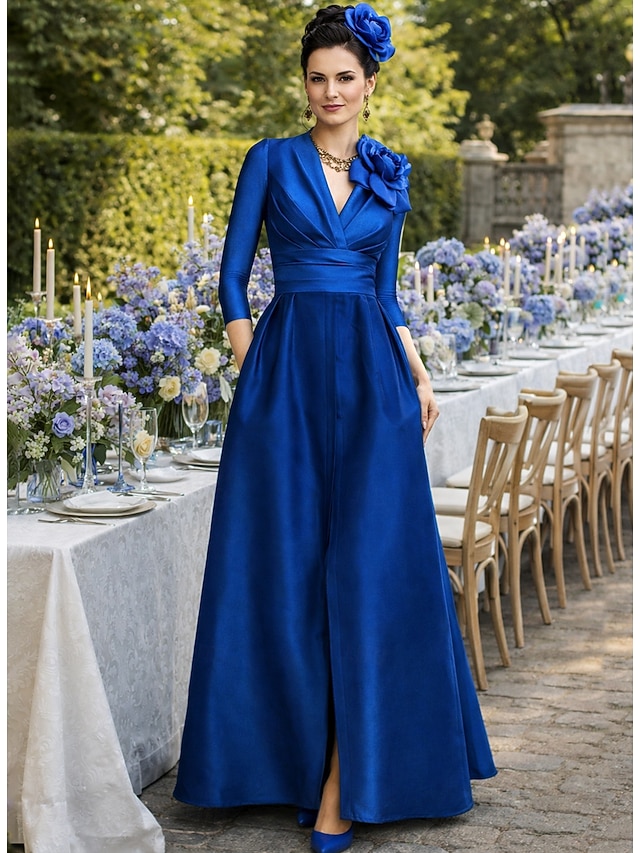 Linea ad A Sirena Tromba Tubino Colonna Lunghezza al pavimento Abito da invitata a nozze Abito Formale Abito da sera Abito da cerimonia per signora Manica 3/4 Mezza Manica Scollo a V Collo gioiello #16801722