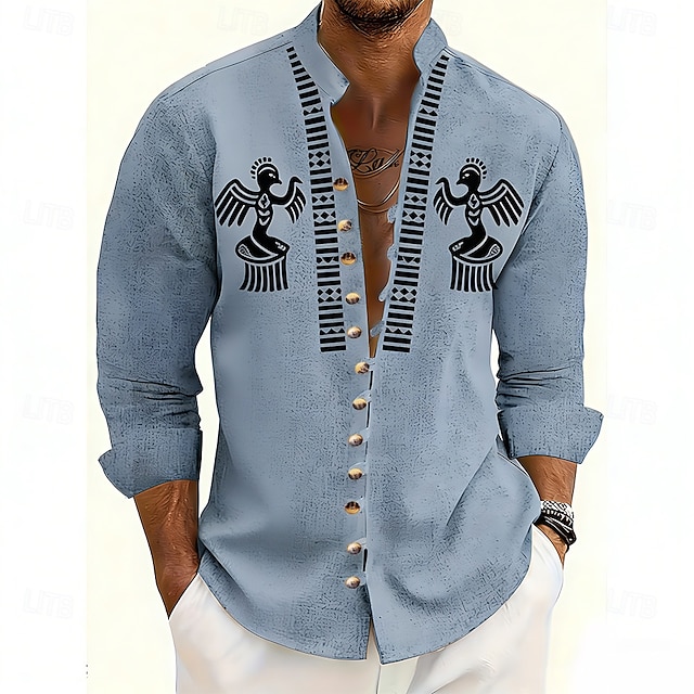 Per uomo Geometrico Uccello Tribale Camicia Camicia con colletto alla coreana Manica Lunga Vintage Retrò Casuale Vacanza Primavera Autunno Collo alla coreana Colletto alla coreana Bottonato Camicia #16811086