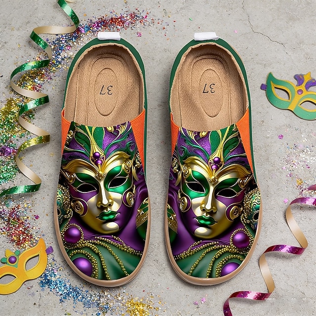 Scarpe Slip-On in Tela con Stampa di Maschere da Carnevale da Donna per Mardi Gras - Calzature Festive e Leggere con Vestibilità Larga per Parate Celebrazioni in Strada Feste a Tema e Uscite Estive#17144588