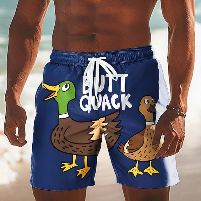 Per uomo Animale Stampa Lettere Anatra Costumi da bagno Pantaloncini da mare Pantaloncini da Surf Misura del girovita medio Divertente Casuale Vacanza al Mare Tasche Laterali fodera in rete Coulisse #17270061