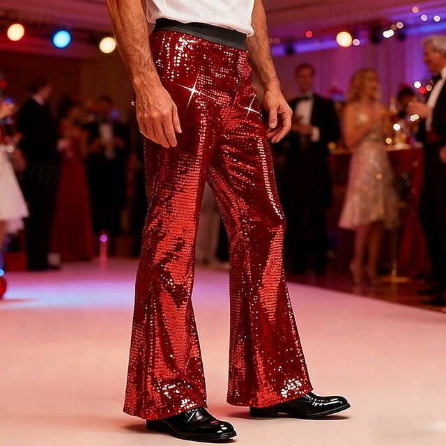Per uomo Pantaloni Pantaloni Eleganti Pantaloni a Zampa Tasca Bottoni Semplice Comodità Feste Palcoscenico Moda Stile Classico Rosso Oro Micro-elastico #17735391